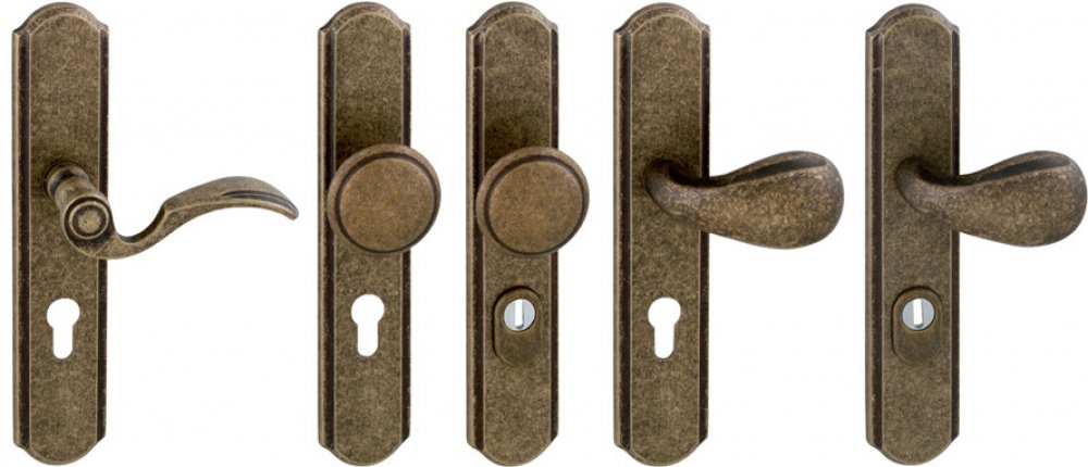 Štítová klika na vchodové a bezpečnostní dveře se zpevněným rustikálním štítem