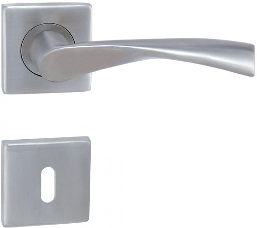 Nerezová klika na hranatých kovových rozetách s prodlouženou 5-ti letou zárukou. Mechanismus kliky OBSAHUJE VRATNOU PRUŽINU. Rozety jsou s výstupkami pro přesnější a jednodušší montáž. Je barevně stabilní a odolná vůči opotřebení. Kování je testováno dle normy ČSN EN 1906:2012 na 200 000 cyklů. Kompletní sada na jedny dveře.