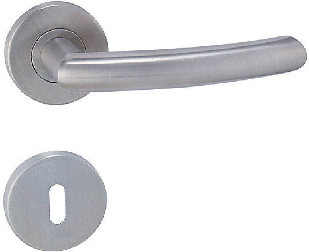 Rozetová klika na interiérové dveře s kulatou rozetou z kvalitní nerezavějící oceli, známé jako nerez a je povrchově upravena. Rozeta má průměr 54 mm a tloušťku 9 mm. Je barevně stabilní a odolná vůči opotřebení. Kování je testováno dle normy ČSN EN 1906: 2012 na 200 000 cyklů.