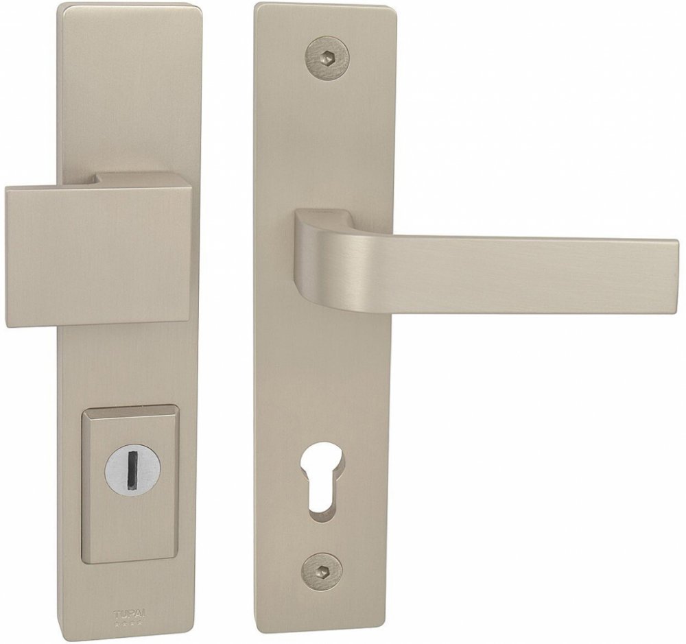 Jelikož jsme se přímo podíleli na vývoji TUPAI SAFETY LINE, můžeme zaručit kvalitu tohoto extrémně odolného kování. Madlo je kotvené na dvou pevnostních šroubech pro celoživotní fixaci bez možnosti samovolného uvolnění. Ocelová závitová pouzdra, která zajišťují prošroubování přes dveře, jsou chráněna ocelovou kuličkou a podložkou proti odvrtání. Ocelové překrytí je uchyceno z vnitřní strany na 4 pevnostní šrouby a výsuv překrytí vložky je nastavitelný do 3 mm. Mechanismus umožňuje uzamykání tahem kliky nahoru. Kování má vlastní vratný mechanismus - pružinu, která zabezpečí vodorovnou polohu kliky nezávisle na zámku.