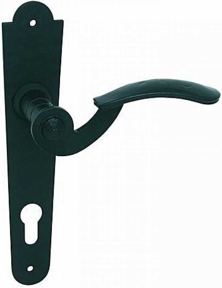 Štítová klika na interiérové dveře s kovaným štítem je vyrobena z kovaného železa a je povrchově upravena.
