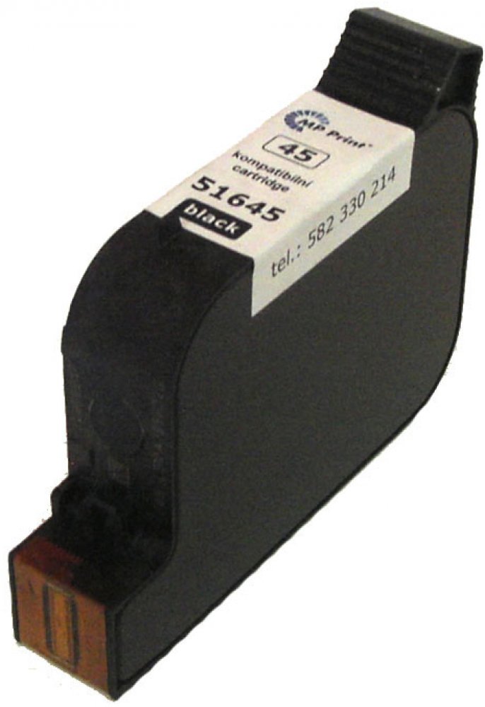 Černá kompatibilní cartridge HP 51645AE. U kompatibilních kazet zaručujeme vysoce kvalitní tisk a počet stran srovnatelný s originální náplní. Na kompatibilní (neoriginální) inkoustové cartridge poskytujeme záruku do spotřebování, i případné poškození tiskárny způsobené náplní. Alternativou kompatibilní kazety jsou renovované cartridge, u níž je potřeba dodat prázdnou kazetu. Určeno pro tiskárny: HP Colour Copier 100, HP Colour Copier 110, HP Colour Copier 120, HP Colour Copier 140, HP Colour Copier 145, HP Colour Copier 150, HP Colour Copier 155, HP Colour Copier 160, HP Colour Copier 170, HP Colour Copier 180, HP Colour Copier 190, HP Colour Copier 210, HP Colour Copier 210 LX, HP Colour Copier 260, HP Colour Copier 270, HP Colour Copier 280, HP Colour Copier 290, HP DesignJet 700, HP Designjet 750C, HP Designjet 750c Plus, HP DesignJet 755, HP Designjet 755cm, HP Deskjet 1000c, HP Deskjet 1000cse, HP Deskjet 1000cxi, HP Deskjet 1100c, HP Deskjet 1100cse, HP Deskjet 1100cxi, HP Deskjet 1120C, HP Deskjet 1120cse, HP Deskjet 1120cxi, HP Deskjet 1125c, HP DeskJet 1150cxi, HP DeskJet 1170c, 1170cse, 1170cxi, HP Deskjet 1180c, HP DeskJet 1180c, 1180cse, 1180cxi, HP Deskjet 1220c, HP Deskjet 1220c ps, HP Deskjet 1220c/ps, HP Deskjet 1220cse, HP Deskjet 1220cxi, HP Deskjet 1280, HP DeskJet 1600, HP Deskjet 1600c, HP Deskjet 1600cm, HP Deskjet 1600cn, HP DeskJet 1600ps, HP Deskjet 6120, HP Deskjet 6122, HP Deskjet 6127, HP DeskJet 710, HP Deskjet 710C, HP DeskJet 712, HP Deskjet 712C, HP DeskJet 720, HP Deskjet 720C, HP DeskJet 722, HP Deskjet 722C, HP DeskJet 815, HP Deskjet 815C, HP DeskJet 820, HP Deskjet 820C, HP Deskjet 820ce, HP Deskjet 820cse, HP Deskjet 820CXI, HP DeskJet 830, HP Deskjet 830C, HP DeskJet 832, HP Deskjet 832C, HP DeskJet 850, 850k, HP Deskjet 850C, HP Deskjet 850CXI, HP DeskJet 855, HP Deskjet 855C, HP Deskjet 855CSE, HP Deskjet 855cxi, HP DeskJet 870, HP Deskjet 870CSE, HP Deskjet 870CXI, HP DeskJet 870k, HP DeskJet 880, HP Deskjet 880C, HP DeskJet 882, HP Deskjet 882C, HP DeskJet 890, HP Deskjet 890c, HP Deskjet 890cm, HP Deskjet 890CSE, HP Deskjet 890CXI, HP DeskJet 895, 895c, HP Deskjet 895CSE, HP Deskjet 895Cxi, HP DeskJet 930, HP Deskjet 9300, HP Deskjet 930C, HP DeskJet 930cm, HP DeskJet 932, HP Deskjet 932c, HP Deskjet 933c, HP Deskjet 934c, HP DeskJet 935, HP Deskjet 935c, HP DeskJet 950, HP Deskjet 950C, HP DeskJet 952, HP Deskjet 952c, HP DeskJet 955, HP Deskjet 955c, HP DeskJet 957c, HP DeskJet 959, HP Deskjet 959C, HP DeskJet 960, HP Deskjet 960C, HP Deskjet 960cse, HP Deskjet 960cxi, HP DeskJet 970,970c, HP Deskjet 970cse, HP Deskjet 970CXI, HP DeskJet 980, HP Deskjet 980c, HP Deskjet 980cxi, HP DeskJet 990, HP Deskjet 990cm, HP Deskjet 990cse, HP Deskjet 990CXI, HP DeskJet 995, HP Deskjet 995C, HP Deskjet 995ck, HP Fax 1220, HP Fax 1220xi, HP Officejet 1170C, HP Officejet G55, HP Officejet G55XI, HP Officejet G85, HP Officejet G85XI, HP Officejet G95, HP Officejet K60, HP Officejet K60XI, HP Officejet K80, HP Officejet K80XI, HP Officejet Pro 1150C, HP Officejet Pro 1150CSE, HP OfficeJet Pro 1170, HP OfficeJet Pro 1170C, HP OfficeJet Pro 1170CSE, HP Officejet Pro 1170CXI, HP OfficeJet Pro 1175, HP OfficeJet Pro 1175C, HP Officejet Pro 1175CSE, HP Officejet Pro 1175CXI, HP Officejet R40, HP Officejet R40XI, HP Officejet R45, HP Officejet R60, HP Officejet R65, HP Officejet R80, HP Officejet R80XI, HP Officejet T45, HP Officejet T45XI, HP Officejet T65, HP Officejet T65XI, HP P1000, P1100, P1115, HP Photosmart 1000, HP Photosmart 1115, HP Photosmart 1215, HP Photosmart 1215VM, HP Photosmart 1218, HP Photosmart 1218xi, HP Photosmart 1315, HP Photosmart 2100, HP Photosmart P1000, HP Photosmart P1000xi, HP Photosmart P1100, HP Photosmart P1100XI, HP Photosmart P1115, HP Photosmart P1115cvr, HP Photosmart P1215, HP Photosmart P1215VM, HP Photosmart P1218, HP Photosmart P1218XI, Olivetti JobJet P200. Barva: černá, Kapacita: 830 stran při 5% pokrytí, OEM: 51645AE