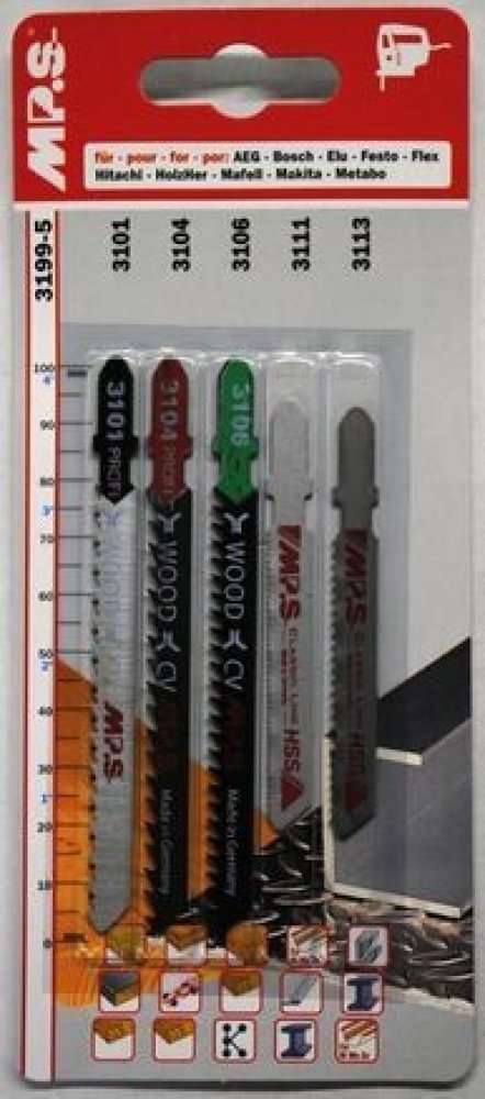 Sada 3199-5 se skládá z plátků do přímočaré pily 3101, 3104, 3106, 3111, 3113