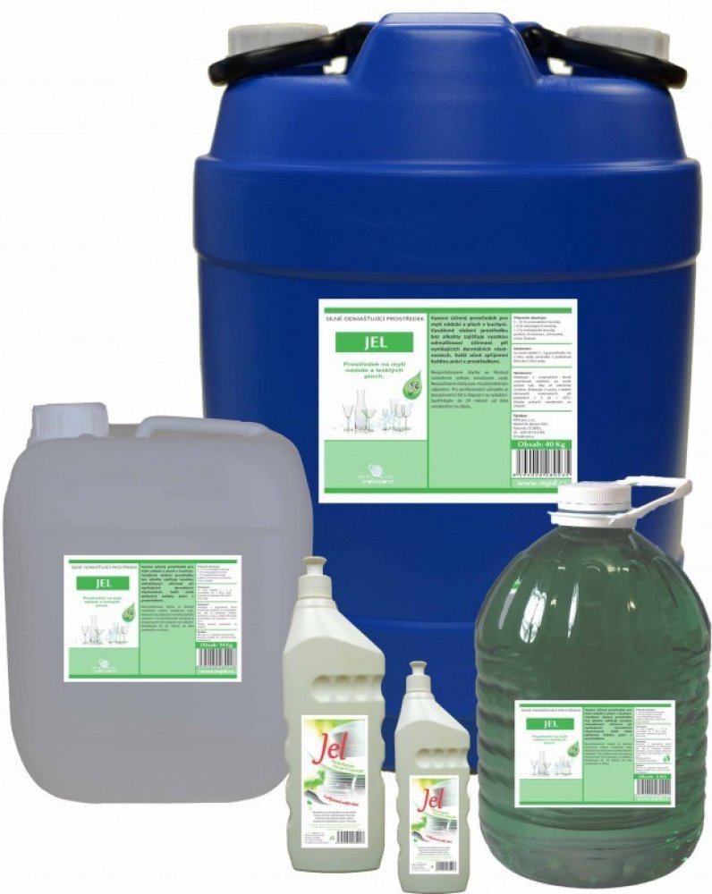 Představujeme profesionální čisticí prostředek na kuchyně a nádobí JEL o objemu 40 litrů. Tento vysoce účinný prostředek určený pro mytí nádobí, skla, porcelánu i veškerých ploch ve velkých i domácích kuchyních, stravovacích zařízeních či potravinářství. Čistič JEL je nealkalický a zajišťuje vysokou efektivitu při odmašťování.Saponát se může pochlubit kromě vynikající účinnosti také svěží vůní, díky které je práce s prostředkem JEL zase o něco příjemnější. Zároveň je svým složením velice šetrný a nedráždí pokožku ani při častém a koncentrovaném používání.