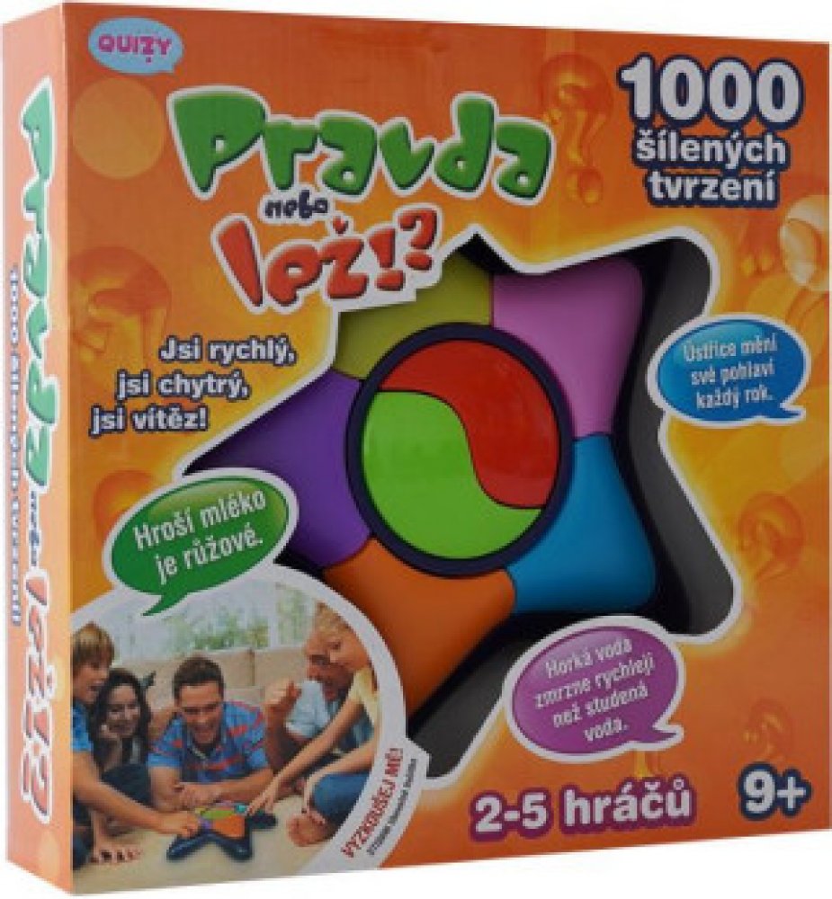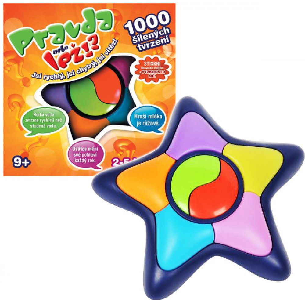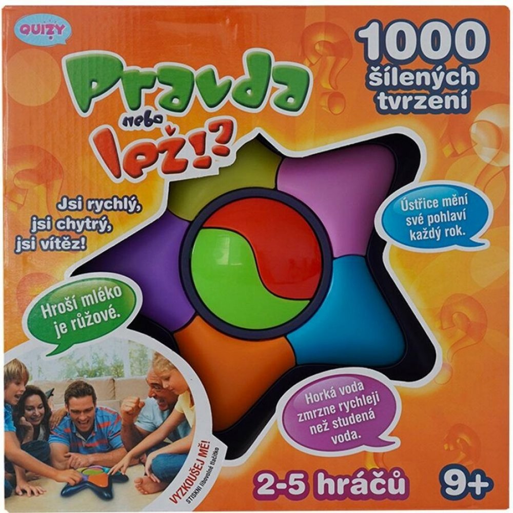 Elektronická společenská hry pro 2 - 5 hráčů. Urči si barvu, pod kterou budeš hrát, odpověz na tvrzení (1000 nahraných tvrzeních), které ti rozhodčí řekne a získáš body. Pokud odpovíš špatně, tak body ztrácíš. Rychlá, zábavná a svižná hra pro celou rodinu. Vhodné pro děti od 9 let, funkce Try me.