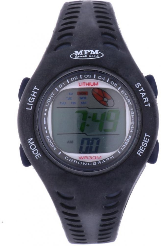 MPM digitální guma guma 30.0 m bateriové dětské bateriové - quartz kulaté černá 1.8 cm pro běžné použití (30–50 m) s dočasným svícením (luminiscence/LED) s nenáročnou údržbou (quartz) na ruku s arabskými číslicemi s elektrickým podsvícením