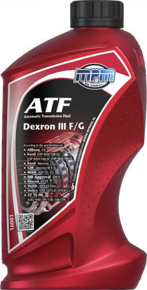 Tento Plně ATF Dexron IIIF/G olej byl speciálně vyvinut pro použití v automatických převodovkách, posilovačích řízení, měničích momentu a ostatní aplikacích, pro které výrobci vyžadují kapalinu ATF (auto třída viskozity podle SAE 10W