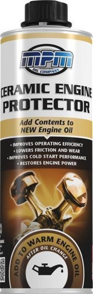 Keramický chránič motoru MPM je vynikající multifunkční aditivum do motorového oleje, které je navrženo tak, aby fungovalo i v těch nejtěžších podmínkách. Vysoký stupeň navázání na kovový povrch má za následek konzistentní pevné a neporovnatelné promazání na nejkritičtějších a nejcitlivějších částí motoru. Tento MPM produkt poskytuje nejen vysoce účinnou vrstvu maziva, která zabraňuje kontaktu kovu s kovem, ale také zajišťuje rychlý přenos tepla z povrchů vnitřních součástí.PoužitíPro všechny zážehové, vznětové a LPG motory s přeplňováním nebo bez něj. Mísitelný se všemi běžně dostupnými motorovými oleji. Není škodlivý pro katalyzátory a neucpává filtry.Není vhodný pro motocykly se spojkou v olejové lázni.Pokyny k použití- Před použitím důkladně protřepejte.- Nalijte obsah jedné 250ml lahvičky do teplého motoru, nejlépe krátce po výměně oleje.- Pro dosažení optimálního výsledku jeďte vozem cca 15 minut.- Ujistěte se, že obsah oleje nepřekročí maximální hladinu oleje v motoru..