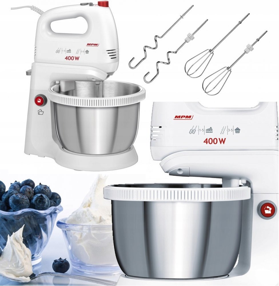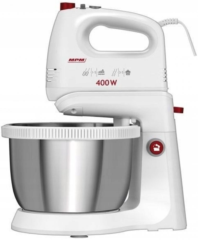 MPM MIXÉR S MISĄ MMR 21Z Mixér s mísami rpmą MMR-21Z je profesionální podpora v kuchyni. Vysoký výkon, vyměnitelné mixéry a stabilní základna zajišťují skvělý komfort používání. Dlouhé a přesné šlehání, míchání nebo hnětení těsta se stává výzvou. cleaną radosti – není potřeba žádná trpělivost ani trpělivost. Zdlouhavé činnosti mixér s mísou rpmą nerez MMR-21Z za nás udělá Mixér s mísami. rpmą MMR-21Z má výkon 400W. Bez námahy zvládne i ty nejobtížnější úkoly. Má 5 kroků. regulace rychlosti a funkcí TURBO. Pomocí ergonomického tlačítka umístěného na rukojeti si můžeme zvolit preferovaná nastavení. Jedním pohybem prstu stačí snížitć nebo zvýšitę zvýšitę rychleść MMR-21Z má dva páry mixérů. – šlehače na šlehání a háky na hnětení těsta. Jejich tvar je přizpůsoben efektivní práci a vhodně přizpůsoben tvaru mísy. Samotná mísa díky své velikosti, kapacitěść (3,5 litru) umožňuje připravovat větší porce pro celou rodinu Otočná nerezová mísa s objemem 3,5 litru 5rychlostní regulace rychlosti + funkce TURBO Tlačítko uvolnění mixéru Ochrana proti náhodnému vyjmutí mixér za provozu Šlehací mixéry na šlehání pěny Hákové mixéry na hnětení těsta Napájení: 220-240V 50/60Hz Výkon: 400 W Plastové pouzdro Mechanická stupňovitá regulace rychlosti Počet rychlostí 347;ci: 5 Funkce Turbo Kapacita nádob (l) 3,5 Tlačítko pro uvolnění mixování a protiskluzové podložky; proti náhodnému vyjmutí a promíchání za provozu, 2 hákové mixéry na hnětení těsta; 2 šlehače na šlehání pěny; stojan s mísami rpmą Možnostść mytí v myčce částečně Dlouhý kabel: 120 cm Základní barva: bíláBarva: Bílá;Pulzní režim: Ne;Turbo režim: Ano;Počet rychlostí: 5;Výkon: 400 W;Kapacita mísy: 3,5 l;Mísa : S otočnou mísou;Hněky na těsto: Ano;Nástavec na mixér: Ne;Sekáček: Ne