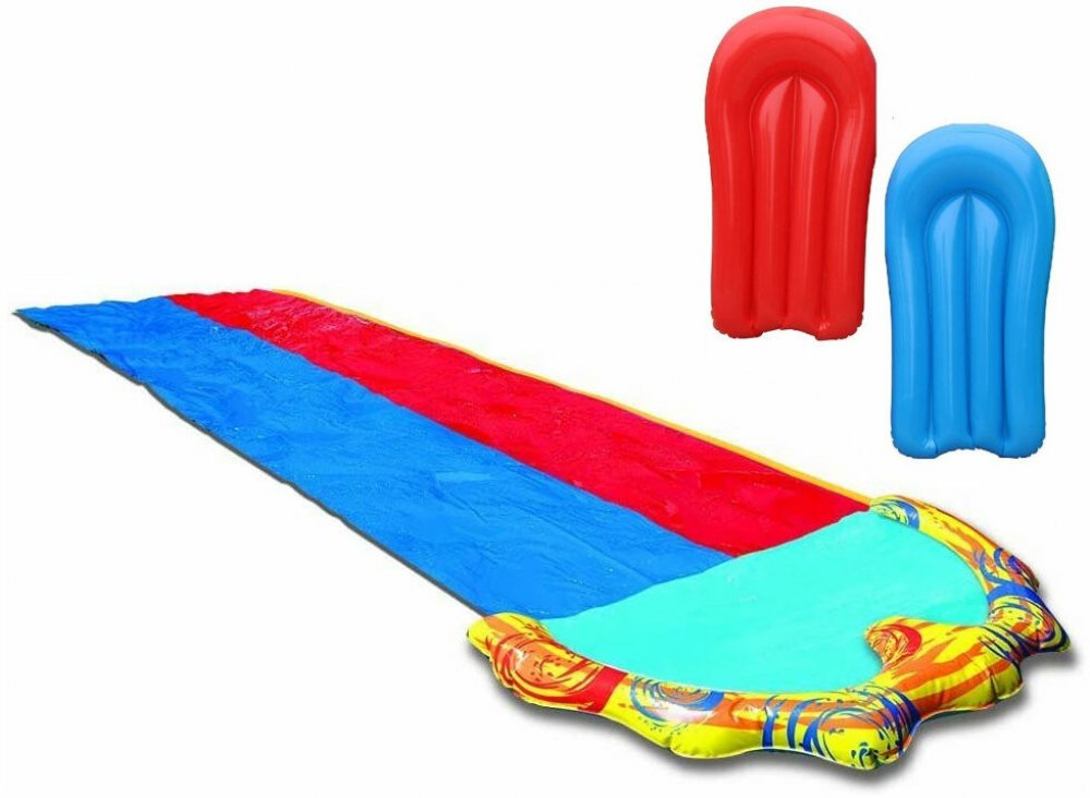 MPMAX Velká vodní skluzavka dvojitá nabízí dvě paralelní skluzavky lákající k závodění a sdílení radosti s přáteli nebo sourozenci. Každá dráha má svoje vlastní lehátko, které zvyšuje zábavnost jízdy a dodává extra porci adrenalinu. Dvojitá velká vodní skluzavka MPMAX je perfektní atrakcí na zahradu nebo na chatu. Podporuje přirozený rozvoj rovnováhy, koordinace a sebevědomí u dětí. Nabízí dvě 488...