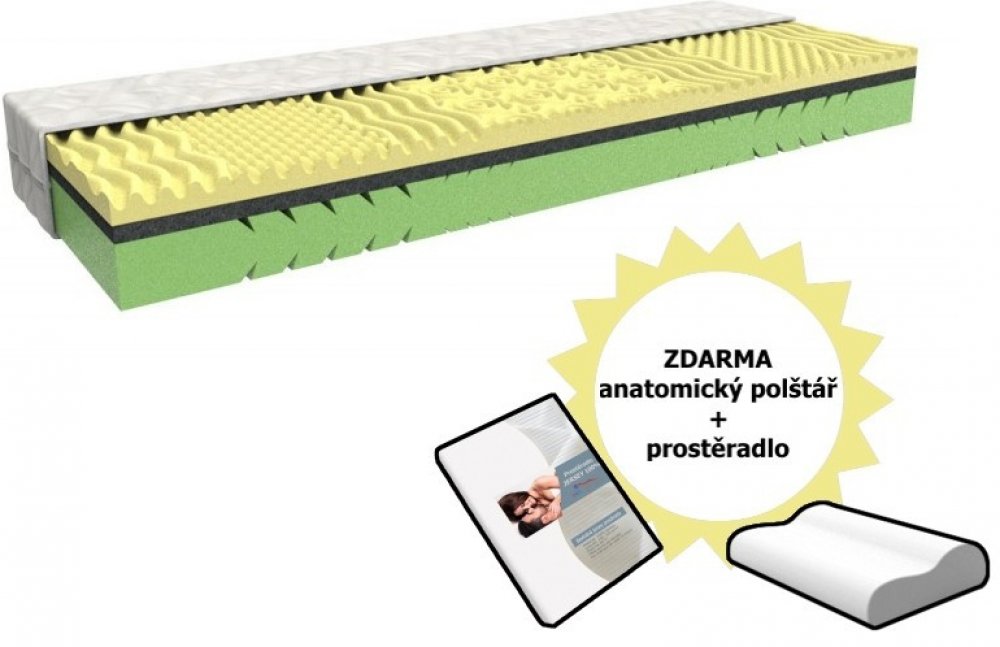 MPO Matrace pěnové 7 zón 120 kg tuhost 3 středně tvrdá paměťová pěna koňské žíně