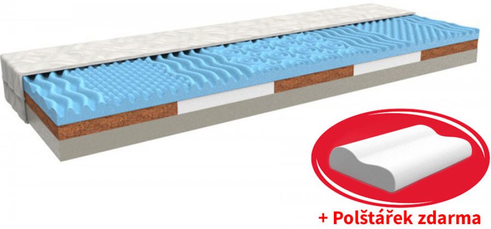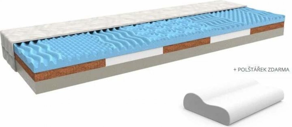 MPO Matrace pěnové 7 zón 120 kg tuhost 4 tvrdá studená pěna (HR pěna) kokosová složka