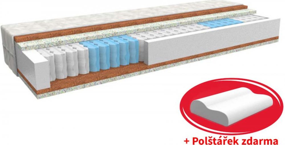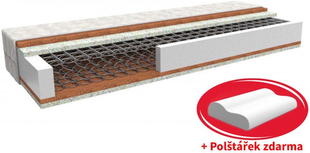 MPO Matrace pružinové 5 zón 130 kg tuhost 4 tvrdá PUR pěna bonelové