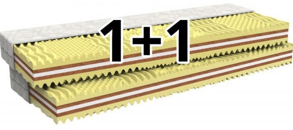 Matrace Hortenzie 1+1 NAVÍC je díky dvěma vrstvám přírodních kokosových vláken velmi vzdušná a vhodná pro všechny druhy podložek a lamelových roštů. Má 7 anatomických zón, nosnost 120 kg a výšku 15 cm. Výbornou vlastností kokosového vlákna je odolnost proti bakteriím, vlhkosti a hnilobě. Speciální nopky na lehacích plochách matrace mají masážní efekt a usnadňují proudění vzduchu mezi potahem a matracovým jádrem. Matrace Hortenzie je díky tepelně modifikované PUR pěně vysoce komfortní a vyznačuje se dlouhou životností. V každém věku a situaci vám zajistí zdravý spánek po celou noc. Všechny typy nabízených potahů jsou alergicky neutrální a pratelné. Stačí si vybrat ten nejlepší pro vás.