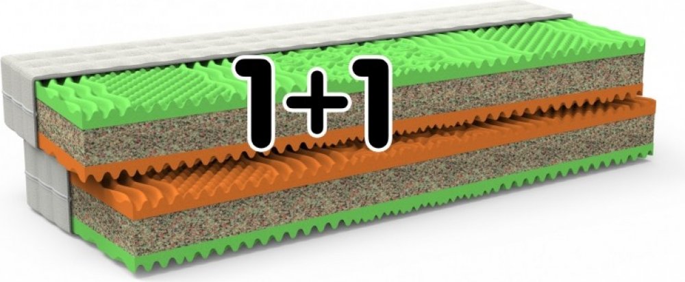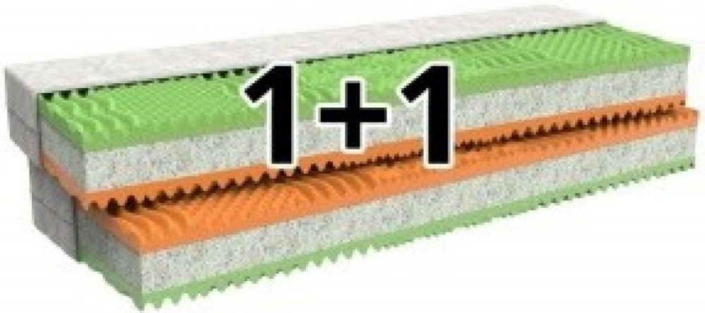 Střed partnerské matrace 1+1 Regina s nosností 120 kg a výškou 16 cm tvoří zátěžová vrstva pojené PUR pěny, která poskytuje optimální pevnost a zabraňuje nepřirozenému křivení páteře. Lehací plochy matrace jsou profilované do 7 anatomických zón, což zajišťuje perfekt...