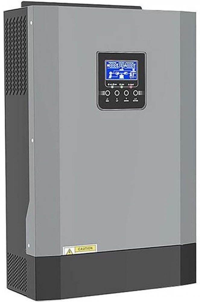 Zařízení je kombinací měniče s čistou sinusovkou, UPS a MPPT regulátoru pro solární panely. Jedná se tedy o záložní zdroj se zálohováním veřejnou sítí nebo generátorem, nabíječkou baterií a MPPT solárním regulátorem, přičemž prioritu zálohování je možno nastavit i inverzně, tzn. prioritou veřejné sítě a zálohou z baterií nebo FV panelů. Parametry produktu: - systémové napětí 24V - měnič s čistou sinusovkou - nabíjecí proud baterie při provozu ze sítě 80A - nastavitelná priorita AC nebo BAT - kompatibilní s napětím generátoru nebo veřejné sítě, měnič se zfázuje s AC vstupem, což umožňuje použití třech shodných měničů s hlídacím relé pro napájení třífazových systémů - ochrana proti přetížení, zkratu a proti vybití baterií - automatický restart po přetížení - inteligentní nabíječka akumulátorů - použitelné baterie: olověné AGM, AGM GEL, s tekutým dielektrikem , LiFePO4 - pro LiFePO4 je nutno nastavit v režimu USE potřebné parametry-pouze pro zkušené uživatele - měkký start pro postupný rozběh zátěží - spotřeba v režimu stand-by 10W - solární panely s max. napětím naprázdno 120–500V a proudem max.20A. (max 5000W) Upozornění: - není možné paralelní an itřífázové propojení. - doporučujeme minimální napětí z FV panelů 160V. - hodnoty zobrazovanané na displeji jsou pouze orientační a jsou relevantní pouze při připojené zátěži. - měnič je určen pro použití pouze v sítích TN-S nebo TN-C-S, podle aktuálně platných norem. Při použití v sítích TN-C (dvouvodičové, fáze+pracovní zem) hrozí poškození nebo nesprávná funkce zařízení. Toto zařízení smí instalovat pouze oprávněná osoba (osvědčení z vyhlášky č. 50/1978 Sb. a elektromontér fotovoltaických systémů (26–014-H)) Nespávné nastavení měniče může vést k jeho poškození.Reklamace z důvodu nesprávného nastavení nemohou být akceptovány.