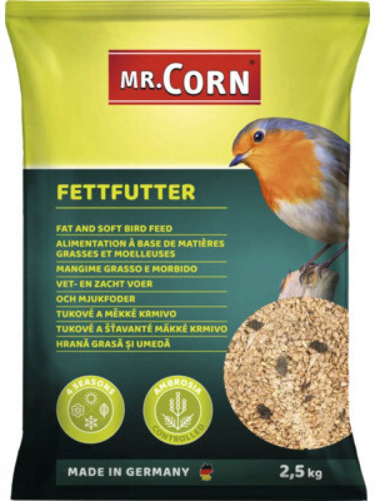 Celoroční tučné a měkké krmivo pro divoké ptáky – ideální pro zimní období i každodenní krmení. Chcete optimálně krmit divoké ptáky po celý rok? Pak je krmivo Mr. Corn tou správnou volbou – výživné, bezpečné a snadno použitelné.
