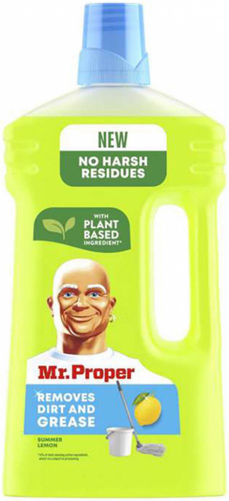 Mr. Proper univerzální čistič Lemon je vynikající na čištění téměř každého tvrdého povrchu ve vaší domácnosti. Je vhodný na čištění kuchyňského dřezu, mastnoty z varné desky, a také na umývání běžných podlah. Tekutý čisticí prostředek Mr Proper odstraňuje nečistoty a mastnotu a díky svému složení s rostlinnou složkou (12 % ze všech povrchově aktivních látek, které procházejí zpracováním) nezanechá...