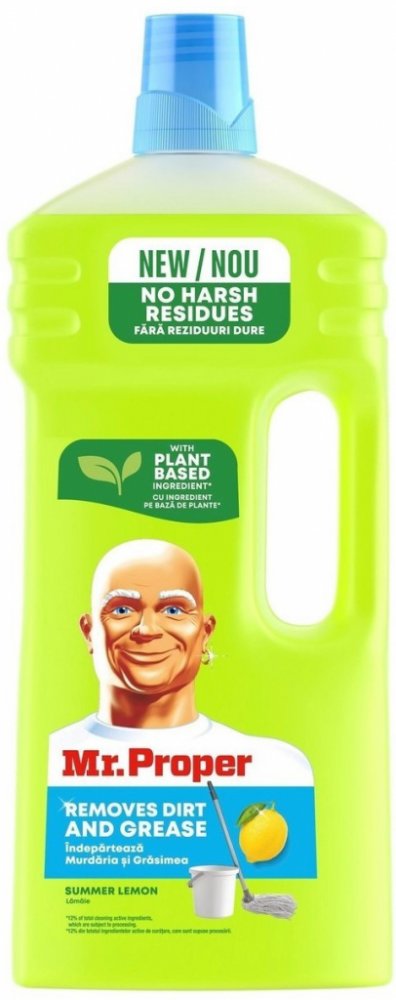 Mr. Proper Víceúčelový čistící prostředek, Lemon 1 l Mr. Proper univerzální čistič Lemon je vynikající na čištění téměř každého tvrdého povrchu ve vaší domácnosti. Je vhodný na čištění kuchyňského dřezu, mastnoty z varné desky, a také na umývání běžných podlah.
