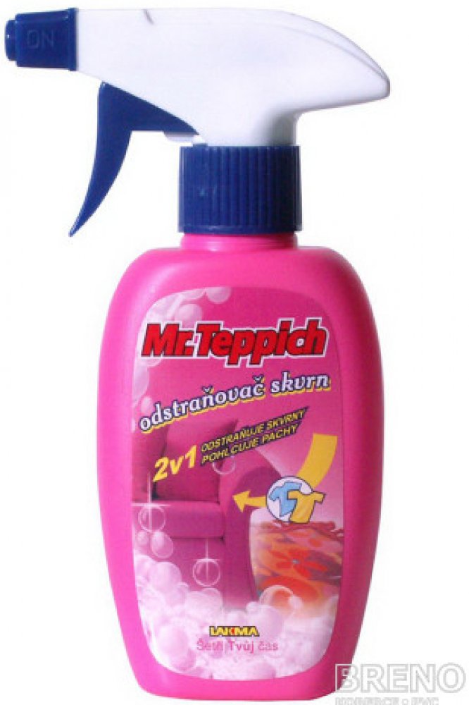 Skvrny, fleky, šmouhy či kaňky se dají jednoduše odstranit! Mr. TEPPICH si poradí i s největšími nečistotami na čalounění i na koberci. Díky své receptuře dokonale čistí skvrny po kávě a víně. Praktický rozprašovač umožňuje aplikaci prostředku i na těžce přístupná místa. Součástí produktu je i systém aktivního kyslíku.