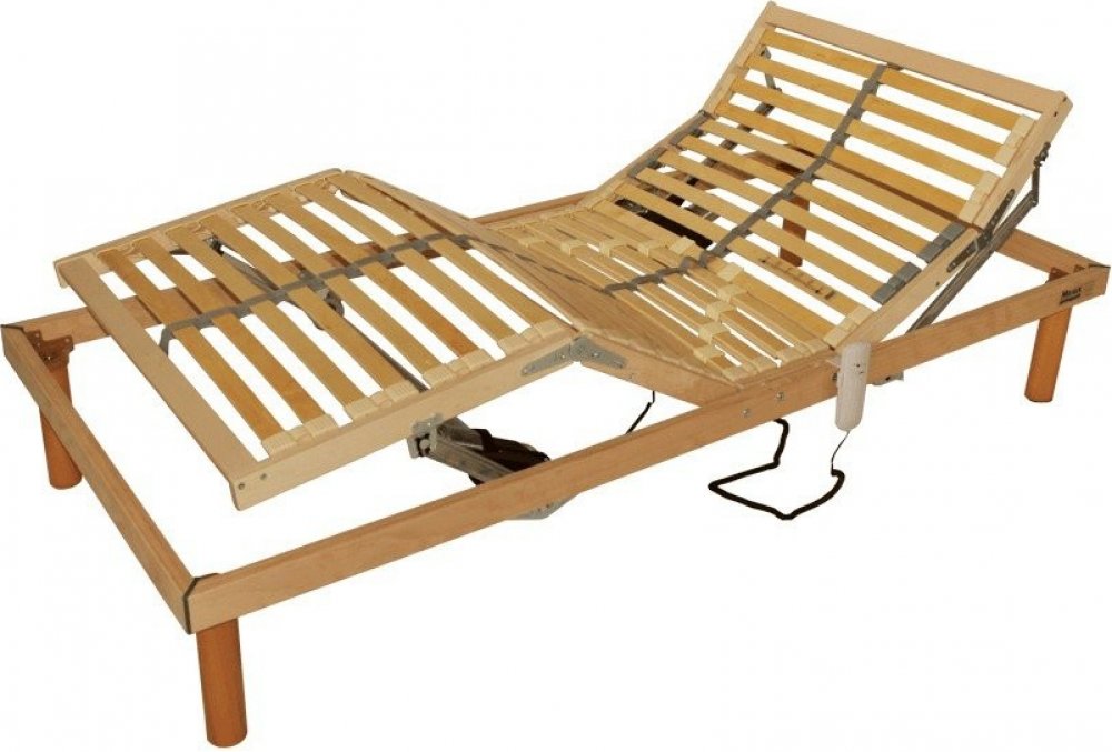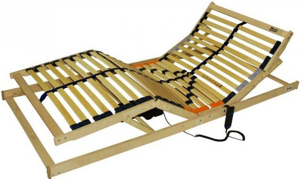 Možnost nastavení polohy hlavy, trupu a nohou. Stabilizace textilním popruhem. 28 ks lamel je uloženo ve výkyvných pouzdrech. Kostra buková. Vhodný zejména pro latexové a pěnové matrace.
