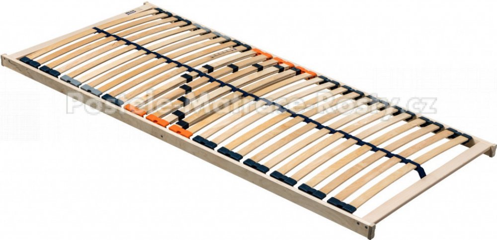 Kvalitný lamelový rošt do postele DOUBLE T5 je tvorený 28 lamelami, ktoré zaisťujú dobrú vetrateľnosť, odvod vlhkosti a rovnomerné rozloženie váhy. 5 zdvojených lamiel s posuvnými opaskami umožňuje regulovať tuhosť a tým aj tlak vytváraný na matrac v bedrovej oblasti. Posúvaním opaskov je možné tvrdosť matraca buď zvýšiť alebo znížiť. Pružné lamely uložené vo dvojiciach v kaučukových púzdrach sú r...
