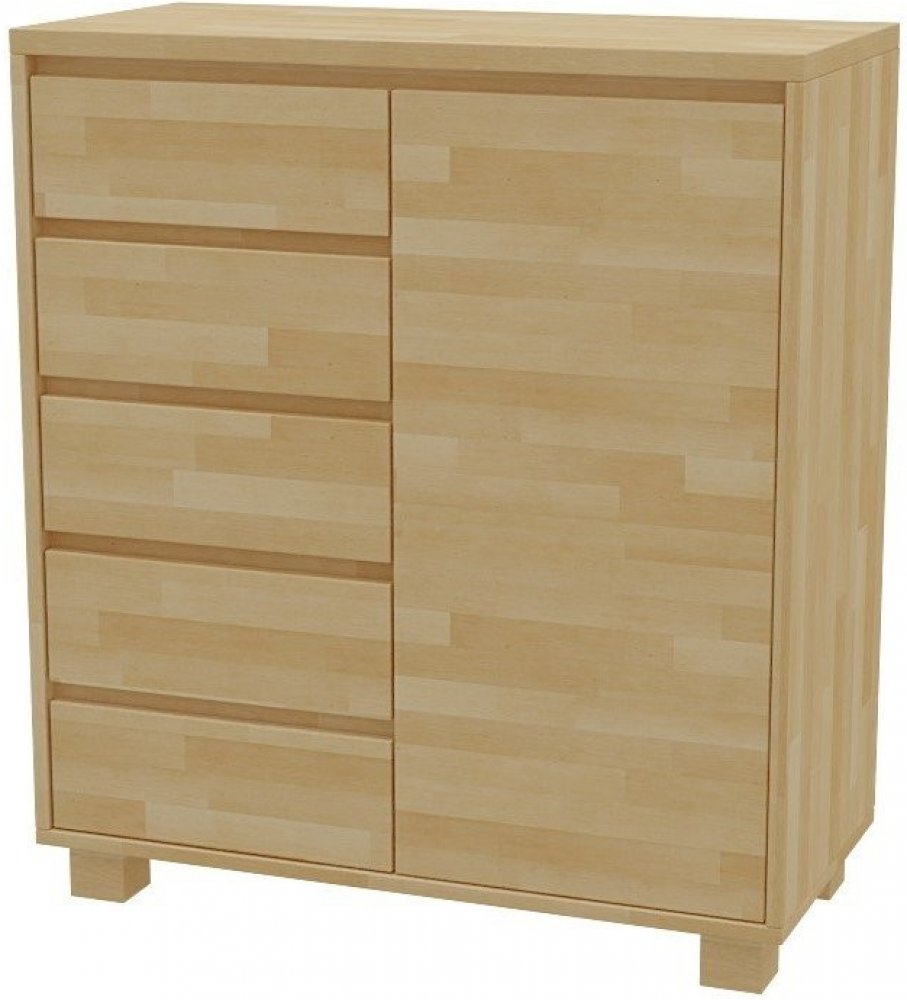 Vyšší velmi prostorná komoda SK-D-5Z je vyráběna z kvalitního bukového masivu v klasickém designovém stylu. Tato komoda je pohledově rozdělena na dva díly. V levé části jsou dvířka s policí, v pravé části je umístěno pět úzkých zásuvek. Zásuvky v jsou opatřeny kuličkovým výsuvem pro snadné otvírání. I maličkosti hrají svou roli, takže i široká škála tónů moření masivu nebo olejovosků dají naší kom...