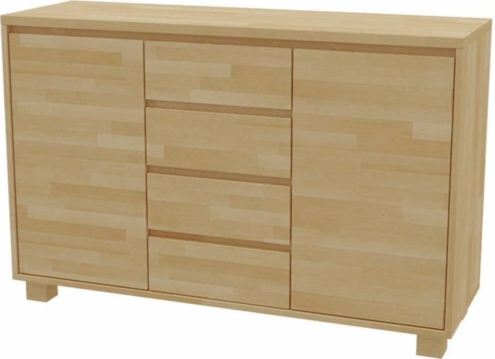 Rozměrově velká a tím i praktická komoda VK-2D-4Z je vyráběna z kvalitního bukového masivu v klasickém designovém stylu. Tato komoda je skutečně velkorysá na úložný prostor. Po obou stranách komody je umístěna skříňka s dvířky a policí pro ukládání objemnějších věcí, ve střední části části jsou umístěny čtyři úzké zásuvky. Zásuvky v jsou opatřeny kuličkovým výsuvem pro snadné otvírání. I maličkosti hrají svou roli, takže i široká škála tónů moření masivu nebo olejovosků dají naší komodě punc originality, zárověň můžeme komodu sladit s barvou naší postele. Jedná se o typ komody, která je skvělým doplňkem nejen do ložnic, dětských pokojů, předsíní a hal, ale také na chaty a chalupy. Pořizována je také do penzionů a ubytoven. Provedení komoda VK-2D-4Z: bukový masiv tl. 30/20 mm 4x úzká zásuvka (bez úchytek) s kuličkovým výsuvem - ve střední části 2x dvířka s policí (bez úchytky) - v levé i pravé části povrchová úprava - přírodní buk / moření buku v řadě odstínů konečná úprava povrchu: lak / olejovosk (Natura Oil) komoda je univerzální pro všechny typy postelí z bukového masivu Rozměry komody VK-2D-4Z: šířka 142 cm výška 92,5 cm hloubka 45 cm Dodáváno – v demontovaném stavu. Podrobný návod výrobce přiložen. Snadné a rychlé složení. Na vyžádání je možné komodu vyrobit i k postelím z bukové průběžky, jádrového buku, dubu rustikal či jilmovým postelím - cena na vyžádání, doba dodání 8-10 týdnů. V případě, že byste potřebovali s čímkoliv pomoci nebo poradit, prosím, ozvěte se nám. Budeme rádi nápomocni. Navštívit nás můžete na prodejně v Brně na Stránského ulici 2a. Záruka: 2 roky. Slovenský výrobce.