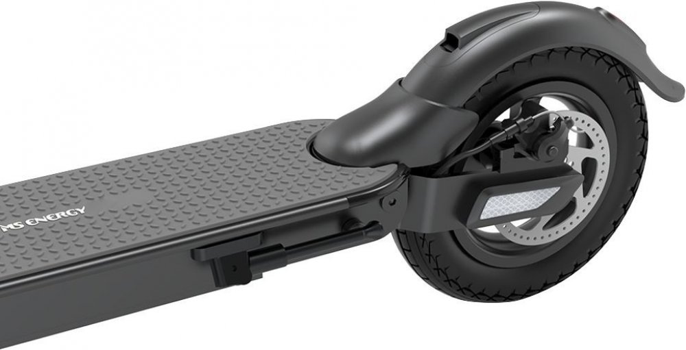 • Elektrická koloběžka MS Energy Neutron n3 zaujme atraktivním designem s protiskluzovým podvozkem a motorem o výkonu 350 W. Baterie s kapacitou 7500 mAh zaručí dojezd 22 – 28 km na jedno nabití. Delší dojezd umožňuje systém dobíjení baterie během jízdy – Energy recovery system. Maximální rychlost je stanovena na 25 km/h . Koloběžka má sklopnou konstrukci a je tedy snadno ovladatelná a dobře přenosná. Nízká hmotnost 13,9 kg a praktická sklopná konstrukce umožnuje cestování autobusem, vlakem nebo jednoduché převážení v automobilu. Luxusní LCD displej, který je zabudovaný ve středu řídítek poskytuje informace o rychlosti, kapacitě baterie, jízdním režimu a další informace. Veškerá jízdní data a informace můžete sledovat i v aplikaci MS Energy v mobilním telefonu. 10“ nafukovací pneumatiky výborně absorbují nerovnosti povrchu a jízda je tak velmi komfortní. Komfortu jízdy přispívá i odpružené zadní kolo a široká řídítka. Díky své pevné a vysoce odolné hliníkové konstrukci zvládnete jízdu i po nerovném povrchu, za slabého deště nebo v prašném prostředí a jízda se tak stává velmi bezpečnou. Koloběžka je velmi vyvážená a zaručuje, že neztratíte rovnováhu ani při velmi nízké rychlosti. Podvozek nabízí dostatečně velký prostor a jeho povrch je vybaven protiskluzovou vrstvou, která zabraňuje klouzání nohou.
