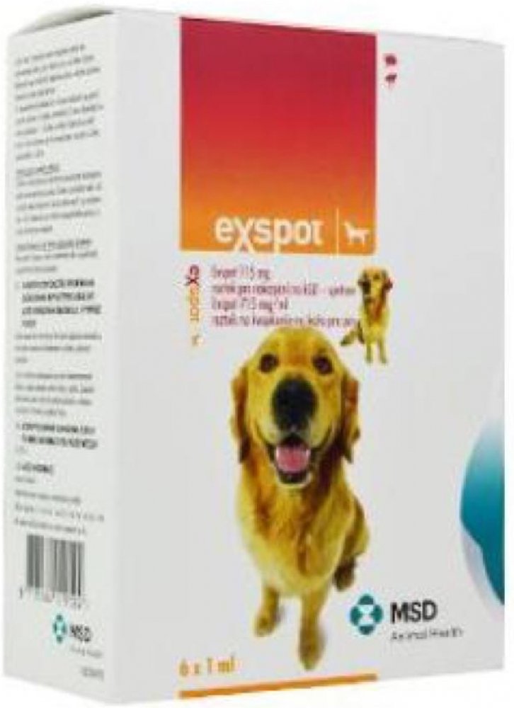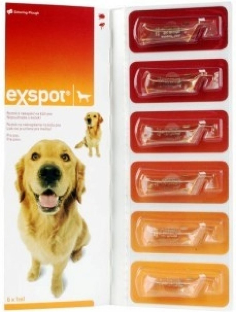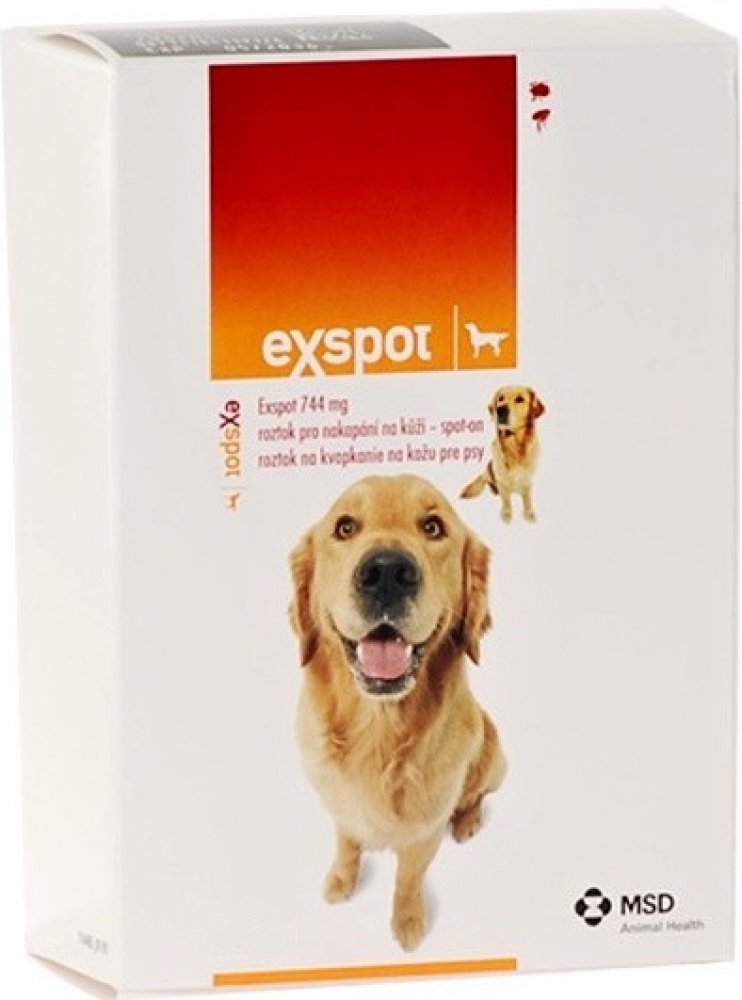 Léčba a prevence ektoparazitóz vyvolaných blechami, klíšťaty a pakomáry (Phlebotomus perniciosus). Exspot zabíjí blechy a klíšťata a zajišťuje ochranu vůči reinfestaci asi po dobu 4 týdnů po aplikaci. Proti pakomárům (Phlebotomus perniciosus) má repelentní účinek po dobu 3-4 týdnů a insekticidní účinek po dobu 2 týdnů.