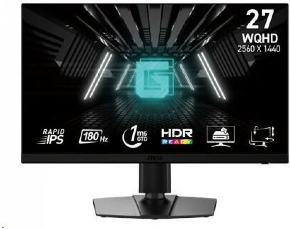 Monitor s 27" Rapid IPS panelem nabízí rozlišení 2560 x 1440 (WQHD) a vysokou obnovovací frekvenci 180 Hz s odezvou 1 ms. Podporuje širokou škálu barev, HDR a Adaptive-Sync pro plynulé hraní. Umožňuje nastavení výšky, naklánění a otáčení, což zajišťuje ergonomické použití.