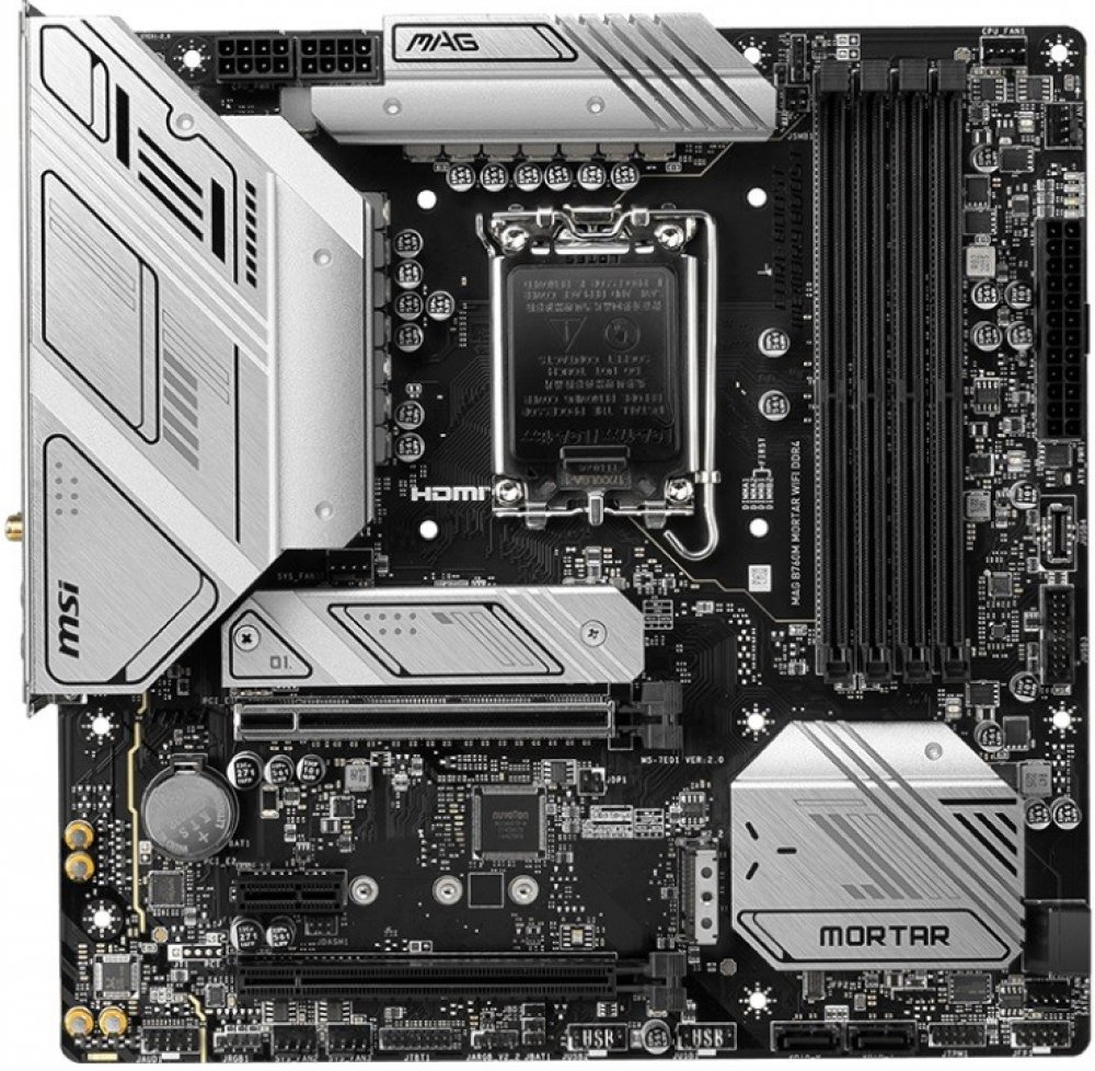 Socket 1700 MSI 7.1 Intel B760 Intel 128 GB 4 DDR4 7000 MHz 1 2 243.84 x 243.84 mm micro ATX (mATX) 5