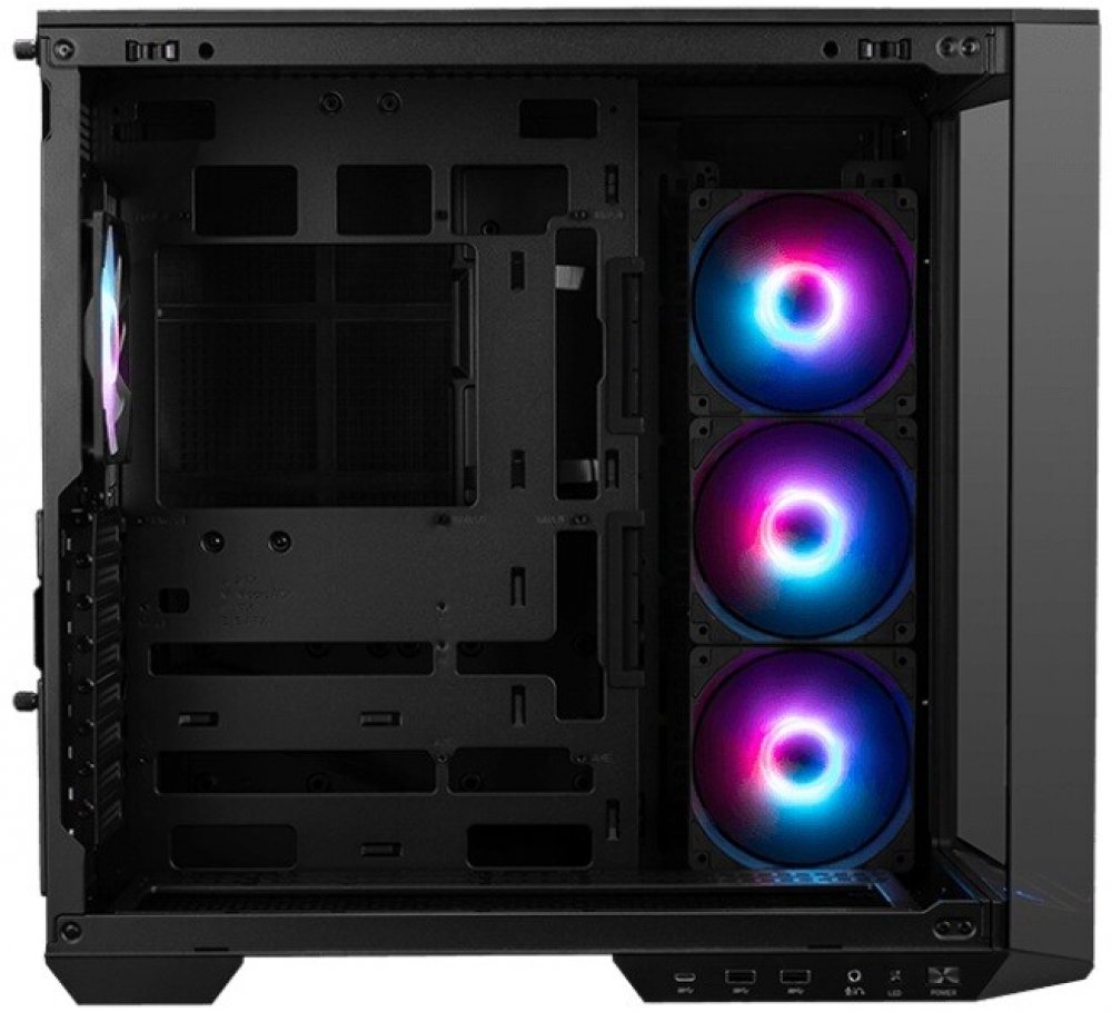 Kvalitní počítačová skříň formátu Middle Tower nabízí tři 2,5" pozice pro SSD disk a dvě 2,5"/3,5" pozice pro SSD nebo pevný disk. Skříň je vybavena průhlednou bočnicí a předním panelem, která spolu s ARGB podsvícením ventilátorů zajišťuje vytříbený design. Rychlou změnu podsvícení umožňuje přítomný ARGB rozbočovač pro 4 ventilátory a tlačítko ve spodní části bočnice. Zde se také nachází dva porty USB 3.0, jeden port USB-C, kombinovaný port sluchátek a mikrofonu i tlačítko napájení. Předinstalovány jsou tři 120mm ARGB ventilátory na boční straně a jeden 120mm ARGB ventilátor na zadní straně. Ve skříni je dostatek prostoru pro chladič CPU do výšky až 166 mm a grafickou kartu o délce až 380 mm. Důmyslné řešení umožňuje pohodlné umístění až 360 mm dlouhého výměníku vodního chlazení na horní, boční či spodní straně. Skříň je dodávána bez zdroje.