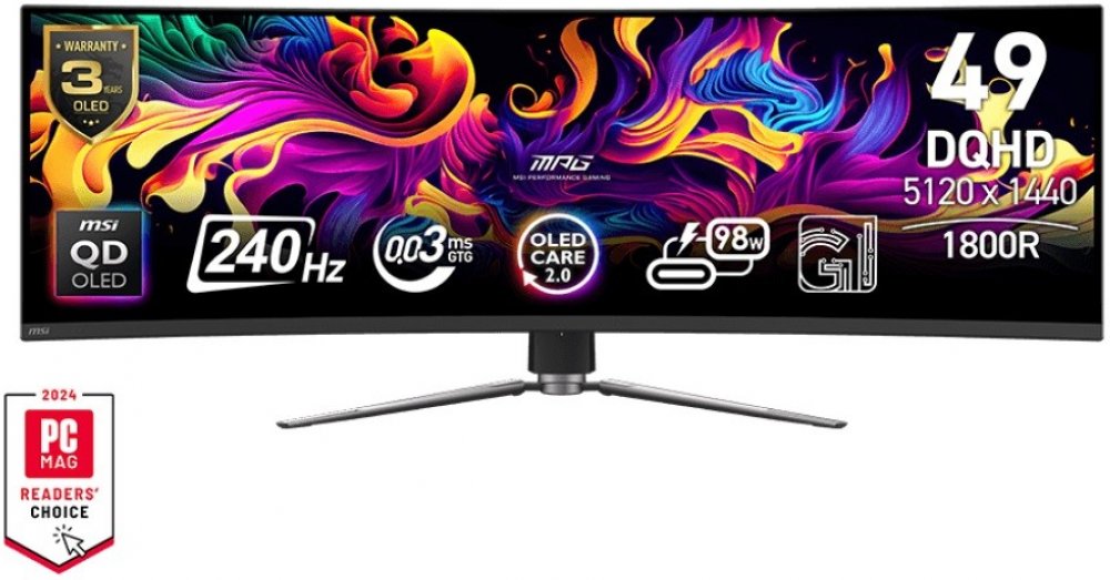 MSI MPG 491CQPX QD-OLED Gaming monitor 49" QD-OLED zakřivený/5120x1440(DQHD)/240Hz/0,03ms/HDMI/DP/USB-A,B,C/výšk.nast.