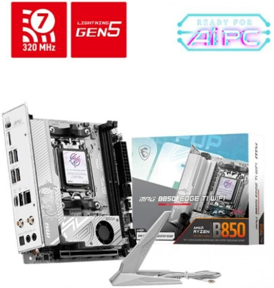 MSI MPG B850I EDGE TI WIFIMPG B850I EDGE TI WIFI is covered with a silver-white color scheme for white PC build lovers to show off different identity. It is also powerful because of its true Wi-Fi 7 solution, 5G LAN, and the latest PCIe 5.0 compatibility, Supplemental PCIe Power, and this is the best white theme B850 ITX motherboard for AMD Ryzen™ 9000 series processors.ChipsetAMD B850CPUSupports ...