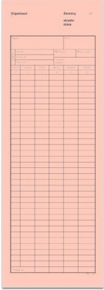 Skladní štítek velký mSk 293. Závěsný skladní štítek velký.   Kartonový, růžový.   Velikost 1/2 A4 na výšku.   Rozměr 297 x 105 mm.