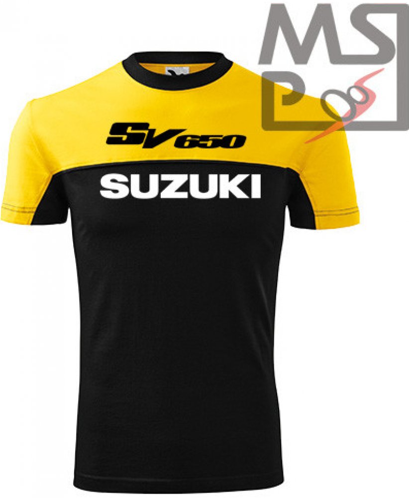 Tričko s moto motivem Suzuki SV650Kvalitní tričko ze 100% bavlny a gramáží 200 g/m²kulatý průkrčník s přídavkem 5 % elastanu z žebrového úpletudvoubarevné provedenívodorovný členící šev s všitým páskemzpevňující páska od ramene k rameniDíky kvalitnímu bavlněnému materiálu a klasickému střihu se tričko skvěle nosí, dobře drží tvar a perfektně sedí na těle. Specifikace trička:Materiál: 100% BavlnaGramáž: 200 g/m²Určení: sport, běžné nošeníTyp: pánskéPratelné pro: 40 °C (doporučená teplota 30 °C naruby), nepoužívat sušičku