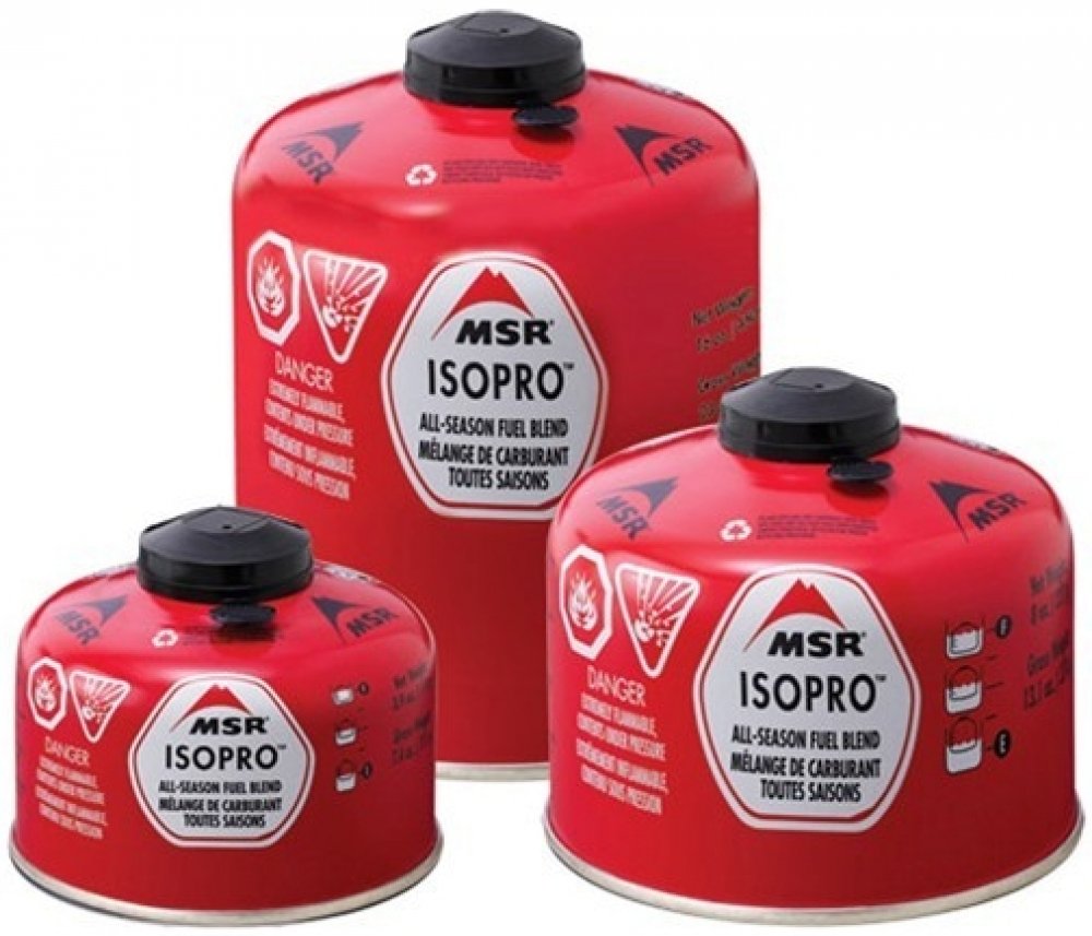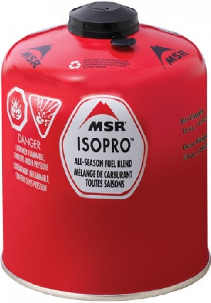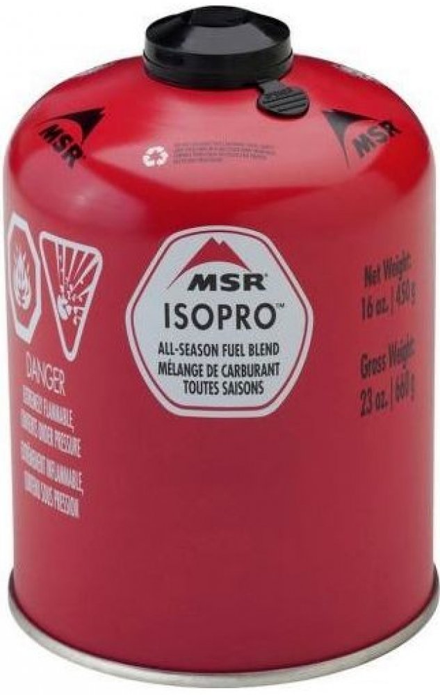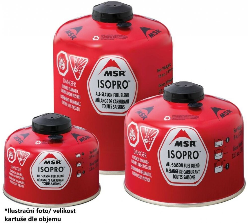 Plynová kartuša MSR IsoPro s hmotnosťou náplne 450g plnená propán-izobutánovou zmesou. Horí čistým plameňom, poskytuje stály plameň, udržuje vyšší vnútorný tlak a vynikajúci výkon pri nízkych teplotách. Kartuša je vybavená samotesniacim ventilom a skrutkovacím závitom európskeho štandardu.
