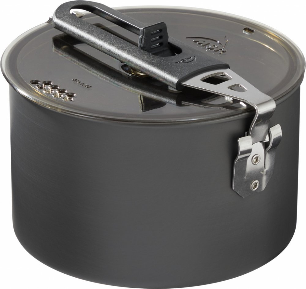Tento lehký a odolný hrnec o objemu 1,3 litru je vyroben z tvrzeného eloxovaného hliníku a je ideální pro milovníky přírody, kteří chtějí spolehlivé kuchyňské vybavení. Vysoce kvalitní eloxovaný povrch poskytuje silnou odolnost proti mechanickému poškrábání, což ho činí ideálním pro dlouhodobé venkovní použití. Materiál nabízí optimální pevnost při nízké hmotnosti a zajišťuje rovnoměrné rozložení tepla pro efektivní vaření. Je určen pro jednu až dvě osoby a umožňuje vám vařit kompletní jídla v jednom hrnci. Rukojeť lze složit nebo zaaretovat pro bezpečnost a kompaktní skladování. Uvnitř hrnce je prostor pro uložení dalších kuchyňských nezbytností, jako jsou hrnky nebo vařič, což z něj činí praktickou a prostorově úspornou volbu pro jakékoli venkovní dobrodružství.