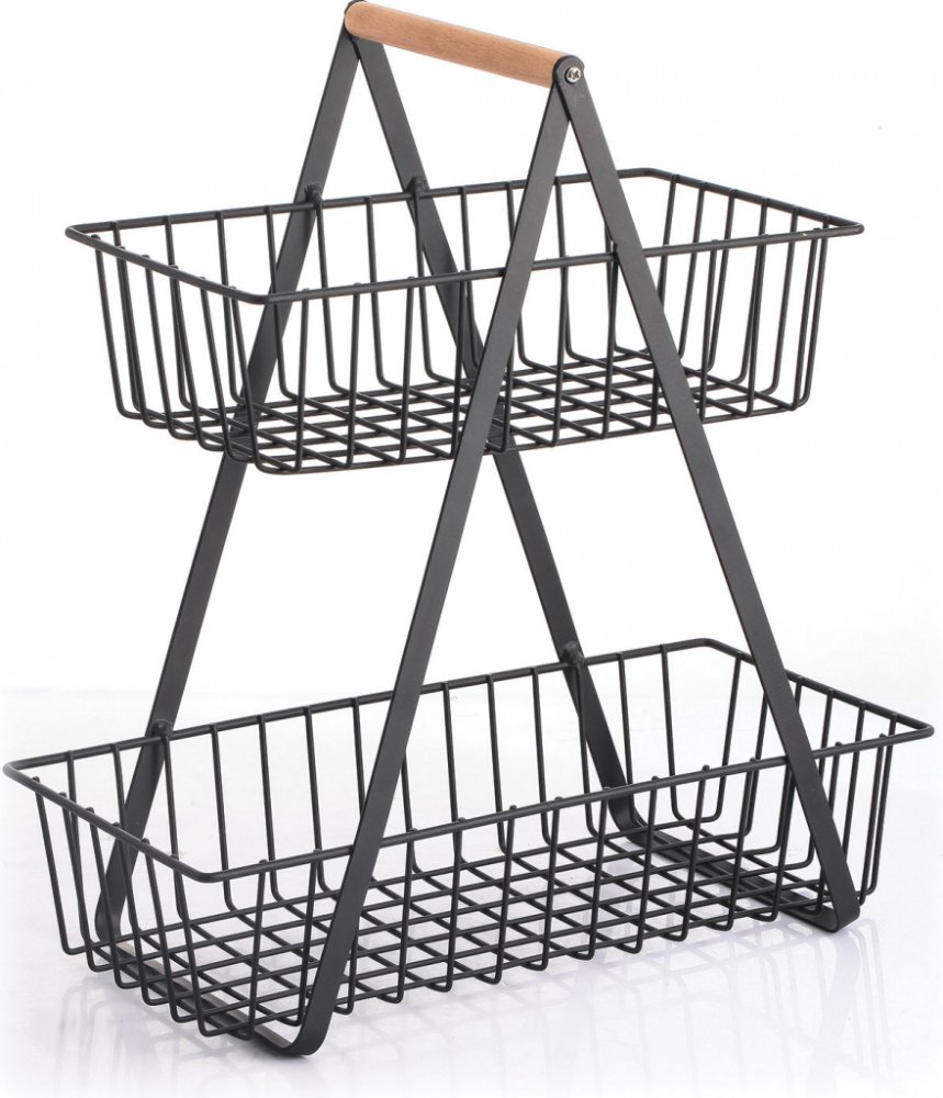 MSV 2 patrový košík ELIE, do kuchyně, černý, ocel, dřevo 110616