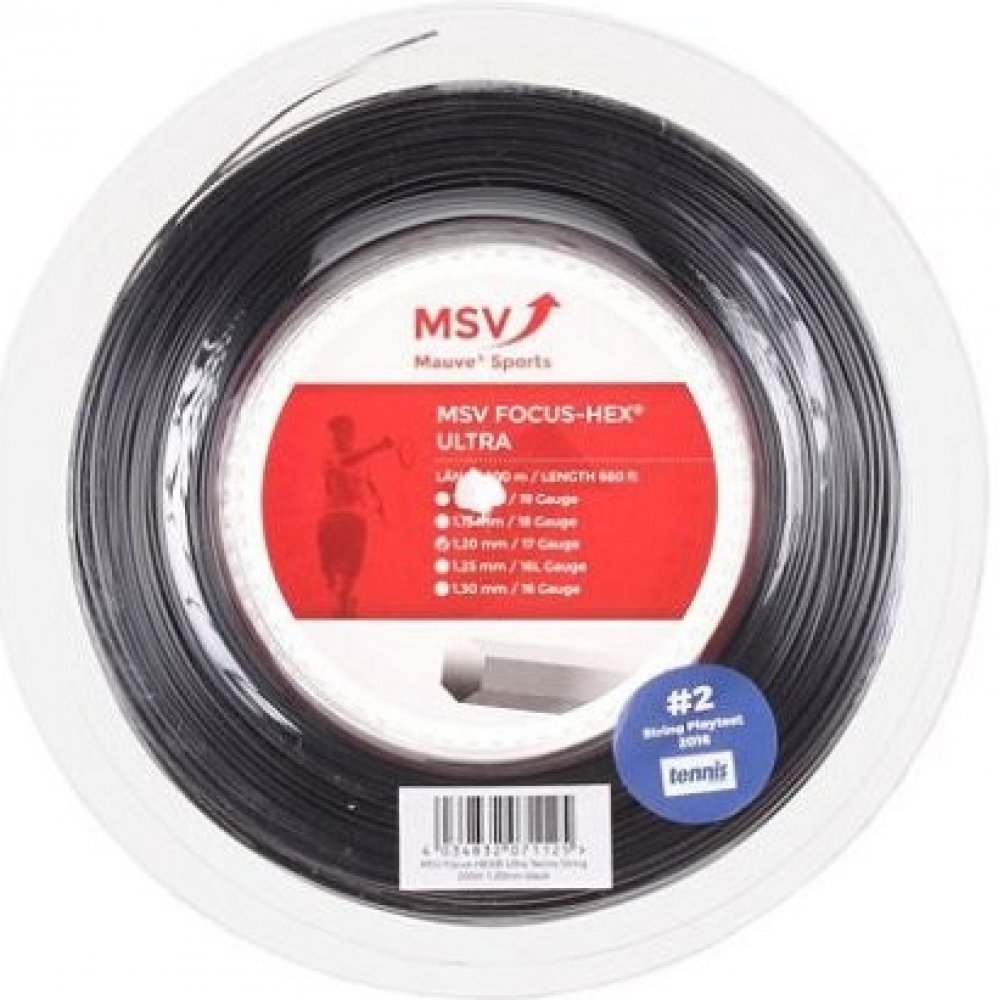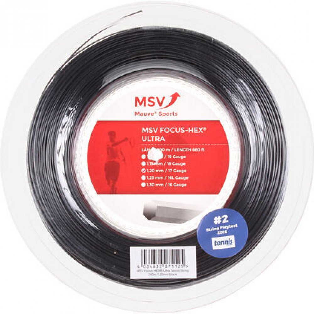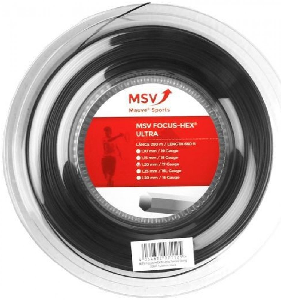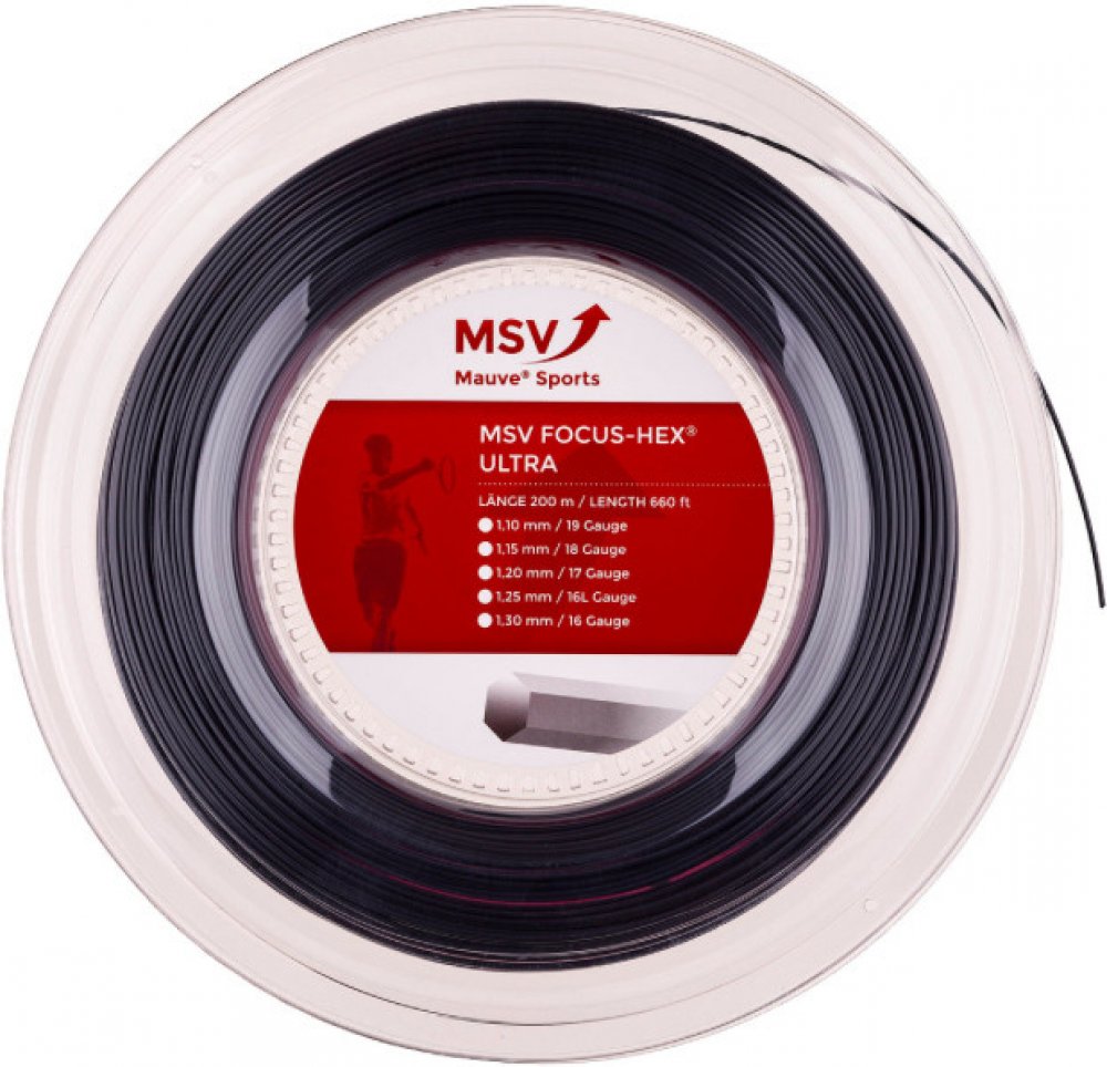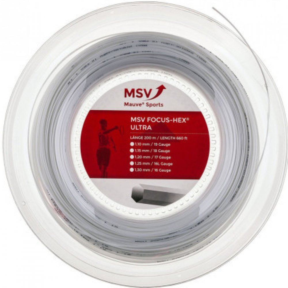 MSV Focus Hex Ultra (200 m) - bílá Špičkový výplet MSV založený na řešeních z výpletu Focus Hex. Technologicky pokročilý polyester poskytuje velmi dobrý pocit z míče. Navíc nabízí: velkou sílu, snížené posouvání výpletu, dlouhé udržení napětí a maximální odolnost. Hexagonální průřez speciálně navržený pro přidání maximální rotace, kontroly a síly.