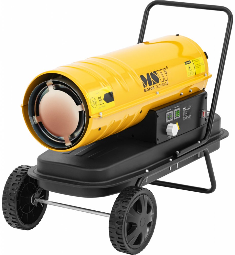 Naftové topidlo značky MSW vám umožní rychle a efektivně vytápět velké prostory, ať už se jedná o sklad nebo stany. K pohonu slouží nafta, kterou lze nalít do nádrže o objemu 18 l. Se spotřebou 1,43 l/h se olejový ohřívač ukazuje jako mimořádně účinný a při plné nádrží zaručuje optimální výsledky ohřevu po dobu až 12 hodin. Umístěte olejový přímotop na dvou kolečkách díky podvozku a praktické ruko...