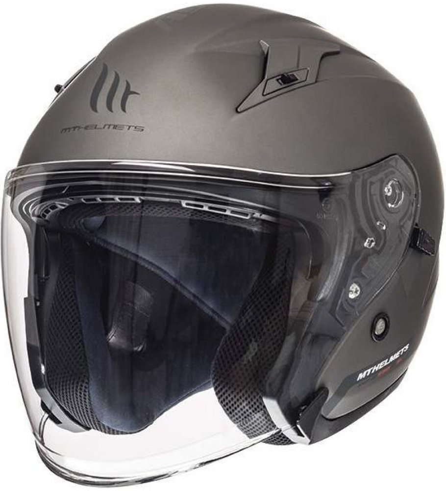 MT Avenue SV Titanium je moderní helma s inovativním designem pro komfortní jízdu na motocyklu či skůtru. Vybavena integrovanou sluneční clonou a dlouhým plexi štítem, který Vás ochrání před větrem a létajícím hmyzem. Skořepina helmy je vyráběna ve dvou velikostech pro ideální dopasování vhodného rozměru a také disponuje účinnou ventilací, kterou lze dle potřeby regulovat.