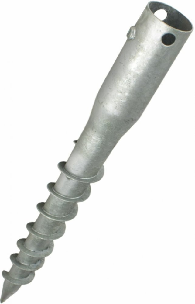 Kvalitní ocelový zemní vrut s kruhovým otvorem a kónickým tvarem šroubovice. Je vhodný pro univerzální použití na zahradě, ve stavebnictví, nebo i při stavbě plotu. Je vhodný zejména pro plotové sloupky a informační tabule. Jednoduchá manipulace a montáž.Zemní vrut má jednu navařenou matice M8, které slouží k zajištění břemena. Pojistný šroub není součástí balení.Únosnost při svislém a rovnoměrném zatížení je orientační – zde hraje velkou roly složení a typ půdy, kam je vrut instalován.