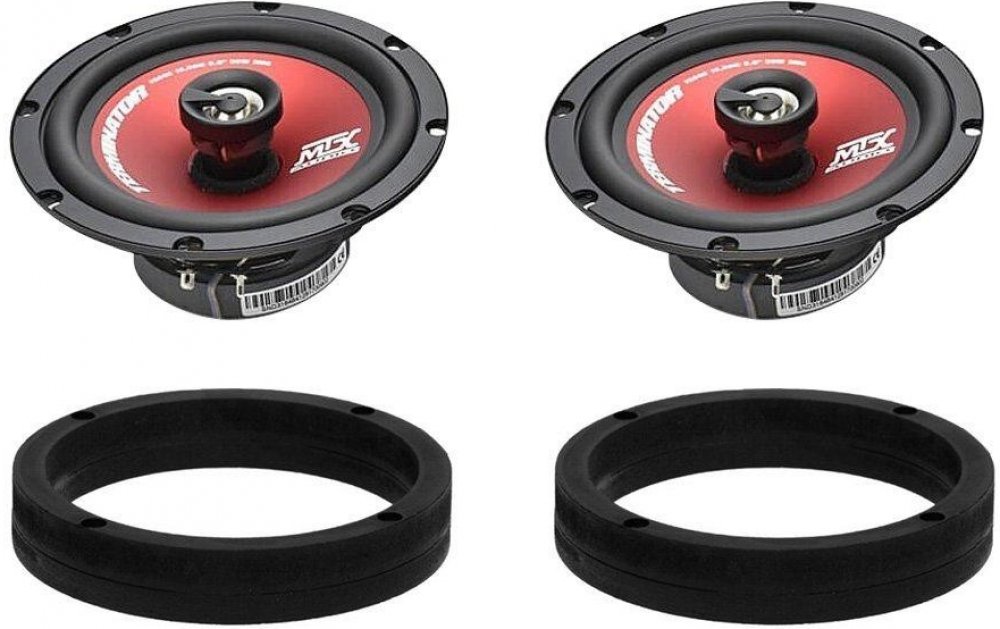 Ohm 1 pár koaxiálních reproduktorů MTX Audio TR65C (2x středobas s výškovým reproduktorem uprostřed) Ohm 1 pár MDF podložek přesně pro Volkswagen New Beetle z roku 2006-2010 do zadních dveří (2ks MDF podložek)