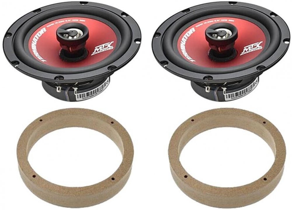 Ohm 1 pár koaxiálních reproduktorů MTX Audio TR65C (2x středobas s výškovým reproduktorem uprostřed) Ohm 1 pár MDF podložek přesně pro Volkswagen Polo z roku 2009-2017 do zadních dveří (2ks MDF podložek)