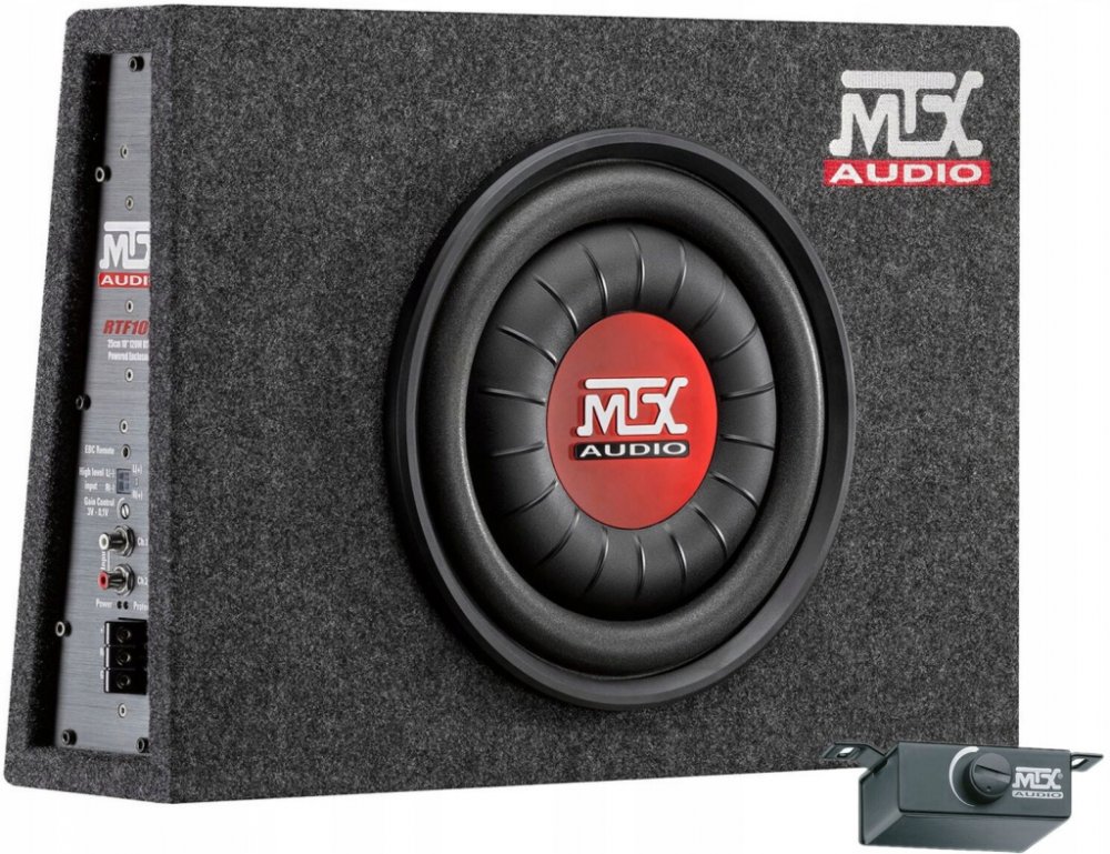 MTX Audio RTF10P je ultra plochá, aktivní uzavřená skříň typu Flat Sealed, vybavená 10“ (25 cm) subwooferem a vestavěným zesilovačem třídy D o výkonu 200 W RMS (600 W Peak). Je to opravdový mistrovský kousek inženýrství, který dokazuje, že silné basy lze uzavřít do mimořádně kompaktní formy.