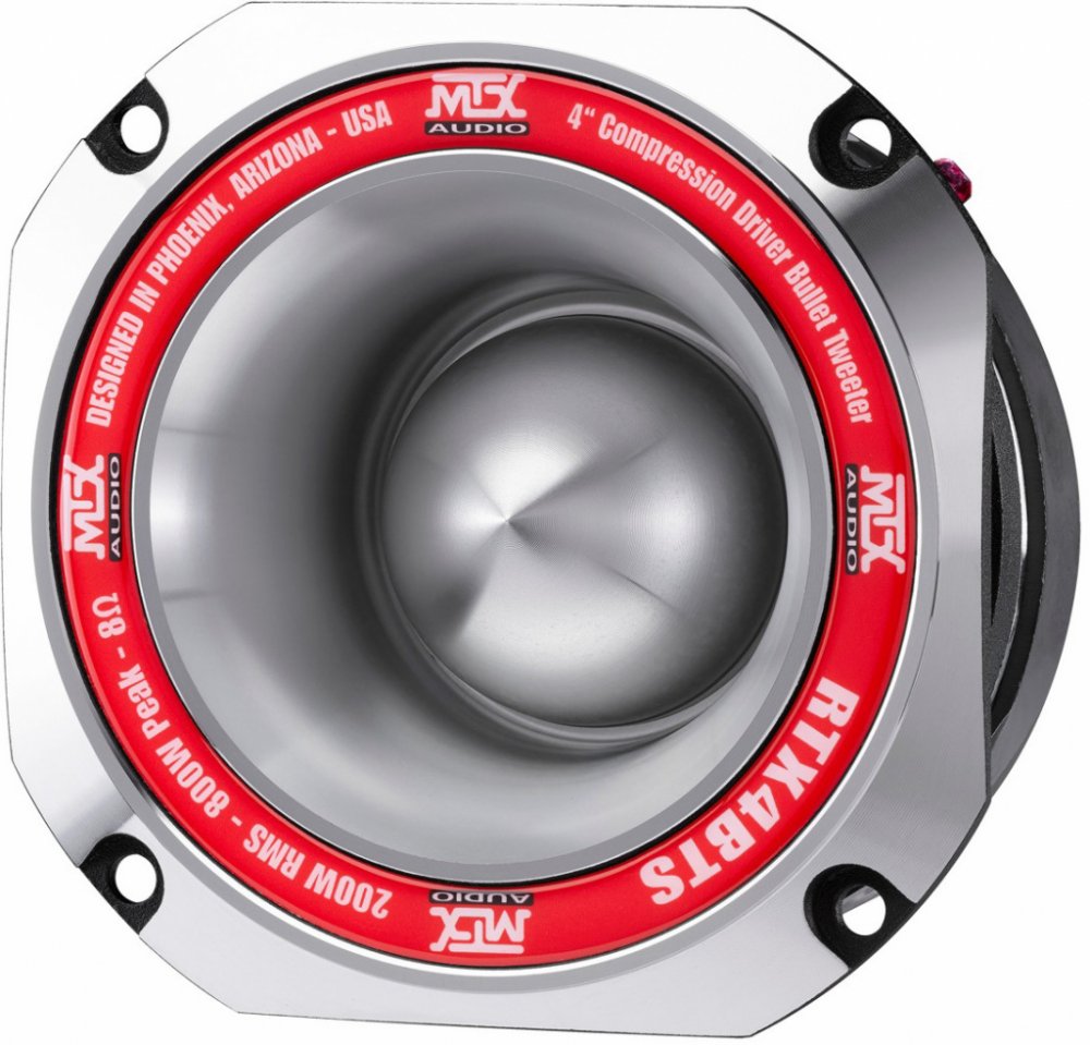 MTX RTX4BTs je vysoce účinný tlakový tweeter. Velký výkon vydává až ještě více zvuku. Je určen pro instalace typu SQL a ozvučení otevřených dveří. Zvuk je silný a velmi živý. Skvělě tak doplňuje tlakové středobasy MTX Audio RTX654 nebo MTX Audio RTX84. Je dodáván s kondenzátorem, který jej filtruje a chrání. Můžete jej ale použít i s aktivním x-overem.