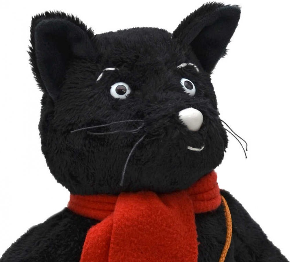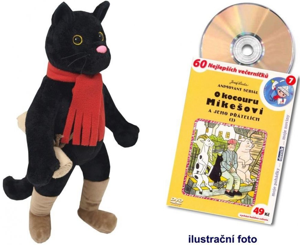 Měkká plyšová hračka Kocoura Mikeše se svlékací šálou a ruksakem. Vyrobeno předlohy Josefa Lady.