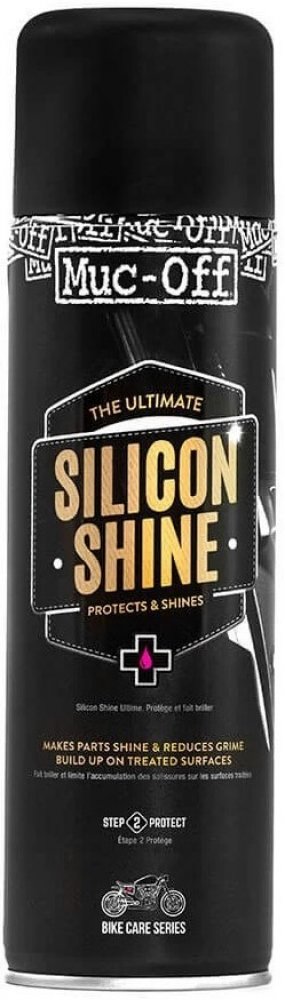 The ultimate silicon spray for the ultimate shine! Silicon Shine nejenže zanechá váš motocykl svěží, ale také snižuje ulpívání nečistot. Nastříkejte jej pod blatníky, aby se na ně bláto nelepilo a příští čištění bylo o něco snazší!